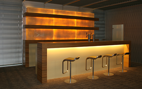 Besonders gelungen ist das Rückbuffet aus hinterleuchtetem und lackierten
