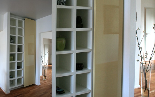 cremefarbene Schiebetürelement macht die Dekorationsmöglichkeiten
